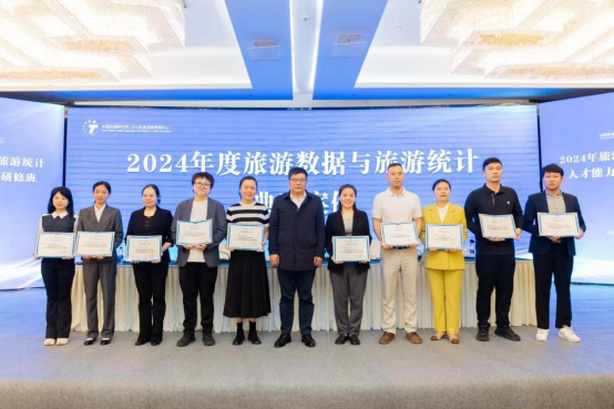 開班式還為福建省文旅經(jīng)濟核算創(chuàng)新、湖南文化和旅游產(chǎn)業(yè)融合統(tǒng)計創(chuàng)新、廣東研學(xué)旅游大數(shù)據(jù)評價指標設(shè)計與應(yīng)用、杭州文化和旅游數(shù)據(jù)在線、桂林假日旅游數(shù)據(jù)統(tǒng)計測算智慧化平臺、邯鄲縣域旅游數(shù)據(jù)測算實踐、基于信令大數(shù)據(jù)的游客監(jiān)測-以浙江省為例、基于支付大數(shù)據(jù)的旅游統(tǒng)計創(chuàng)新-以江蘇省為例、南京鄉(xiāng)村旅游大數(shù)據(jù)服務(wù)平臺、新疆旅游統(tǒng)計和多元大數(shù)據(jù)匯聚平臺10個項目頒發(fā)了2024年度旅游數(shù)據(jù)與旅游統(tǒng)計典型案例證書。