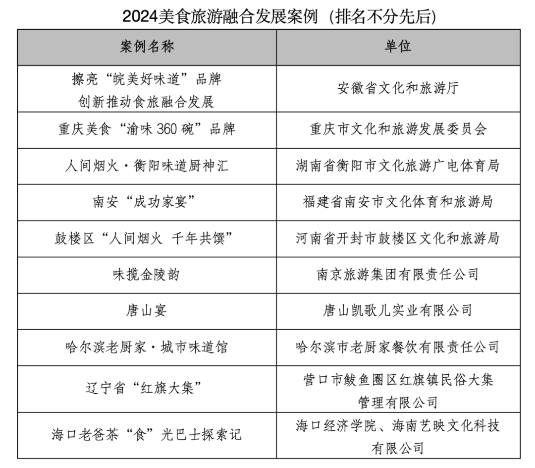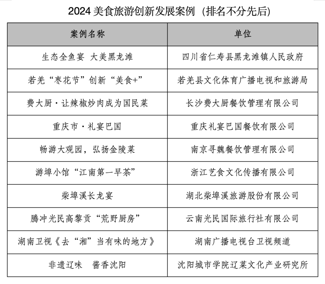 9月21日,由中國(guó)旅游研究院、湖南省文化和旅游廳、中共衡陽(yáng)市委、衡陽(yáng)市人民政府聯(lián)合主辦,湖南省旅游協(xié)會(huì)、衡陽(yáng)市文化旅游廣電體育局、衡陽(yáng)市商務(wù)局承辦,世界中餐業(yè)聯(lián)合會(huì)支持舉辦的“2024美食旅游發(fā)展大會(huì)”在湖南衡陽(yáng)舉行。大會(huì)發(fā)布了“2024美食旅游融合發(fā)展案例”與“2024美食旅游創(chuàng)新發(fā)展案例”名單。【榮譽(yù)詞】中國(guó)美食,從五千年浩瀚歷史中走來(lái),汲取人文精華、孕育酸甜苦辣,璀璨了中國(guó)人的餐桌、強(qiáng)健了中國(guó)人的體魄。當(dāng)美食的車輪行駛在大眾旅游的軌道上,一切便豁然開(kāi)朗,一串串踏尋美食的足跡,繪就了一幅幅美好生活的畫(huà)卷。一碗味道喚起了一片鄉(xiāng)音、一道菜肴勾起了一城的記憶、一份惦記撐起了一個(gè)招牌的百年傳承、一個(gè)故事能催化出有味道的耀眼光芒……從政府到企業(yè),從院校到廚房,廚師、店長(zhǎng)、主理人,無(wú)數(shù)雙手推動(dòng)美食與旅游在融合的道路上,越走越遠(yuǎn)。
