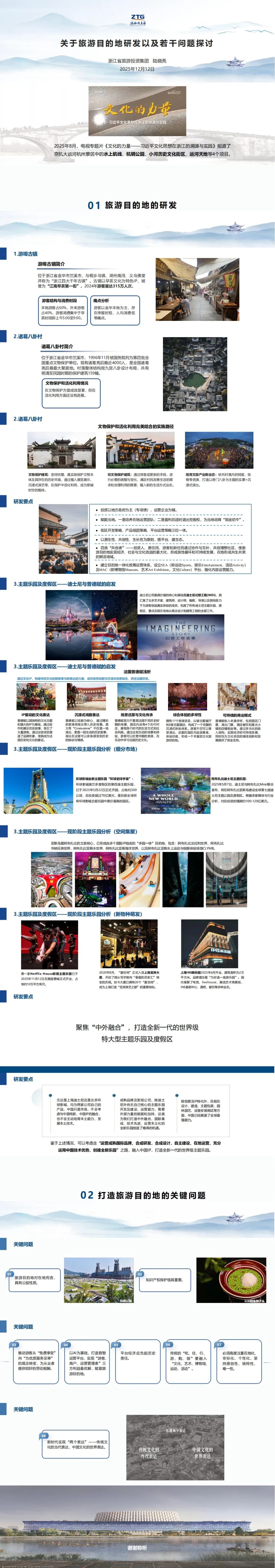 感謝中國(guó)旅游研究院、中國(guó)旅游協(xié)會(huì)提供這個(gè)平臺(tái)。今天,我在去年匯報(bào)新時(shí)代全域旅游目的地思考(以京杭大運(yùn)河杭州景區(qū)實(shí)踐為例)的基礎(chǔ)上,繼續(xù)匯報(bào)這一年中旅游目的地項(xiàng)目和產(chǎn)品研發(fā)以及應(yīng)該引起重視的問(wèn)題。同時(shí)也報(bào)告:2025年8月,電視專題片《文化的力量——習(xí)近平文化思想在浙江的溯源與實(shí)踐》報(bào)道了京杭大運(yùn)河杭州景區(qū)中的水上航線、杭鋼公園、小河歷史文化街區(qū)、運(yùn)河天地等4個(gè)項(xiàng)目。